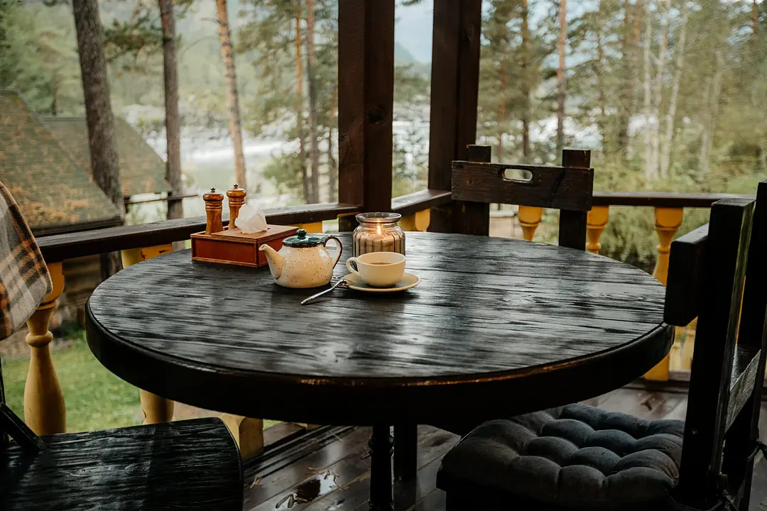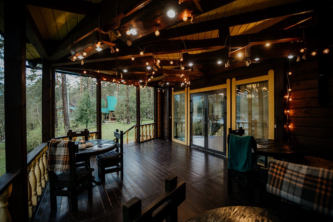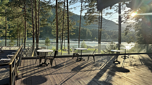 Теплая атмосфера и уют — главная особенность этого зала. Идеально подходит для обеда или ужина с видом на алтайскую природу, а также для индивидуальных событий до 50 человек. В летнее время в ресторане работает открытая терраса.