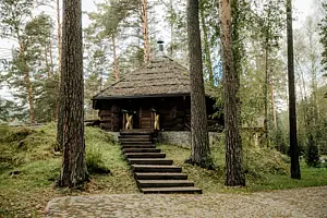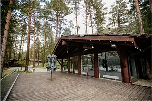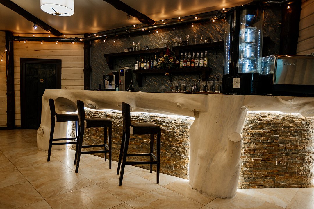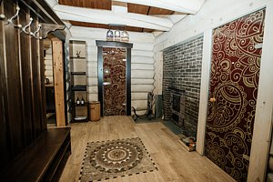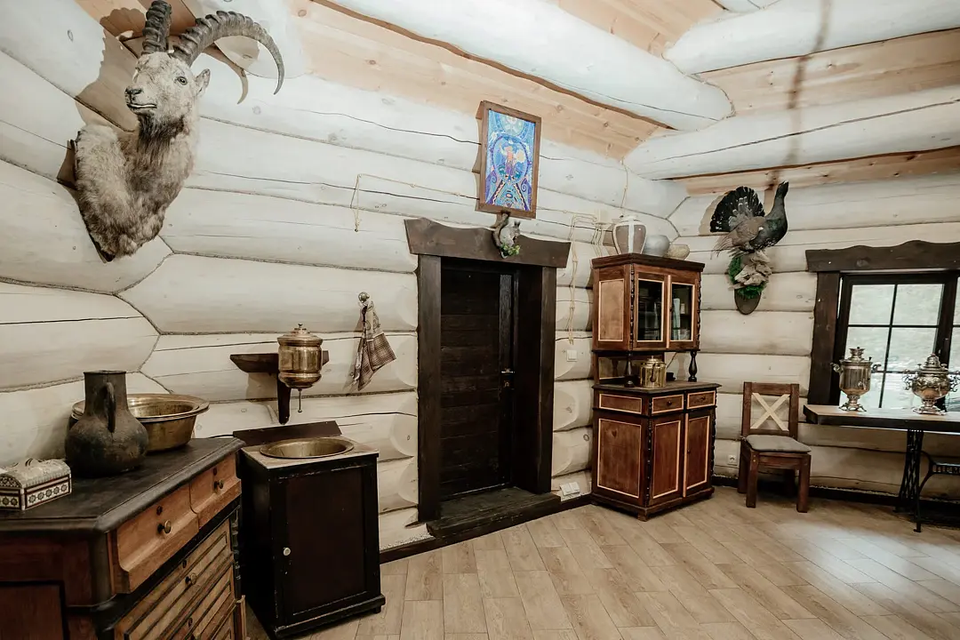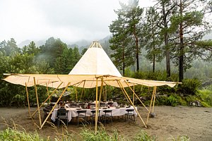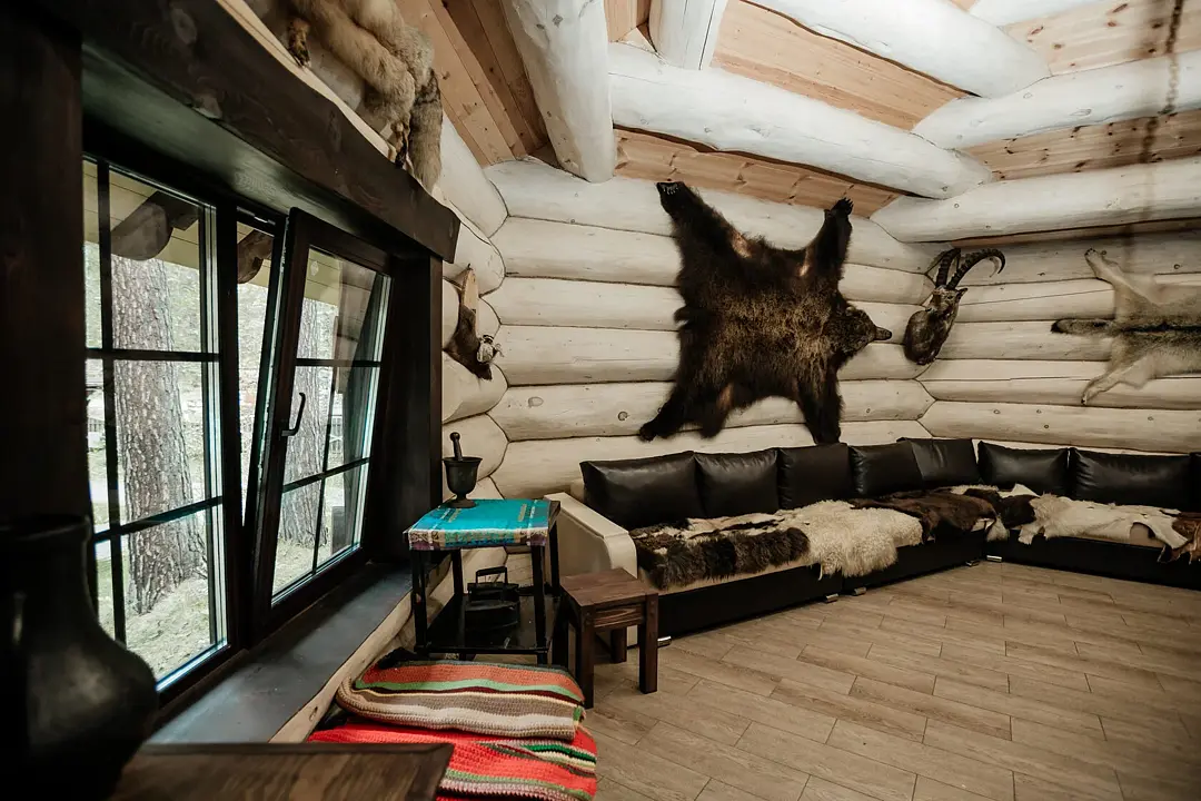 Уютное пространство в традиционном алтайском стиле с очагом в центре создаёт особую атмосферу для душевных встреч. Вместимость — до 20 человек.