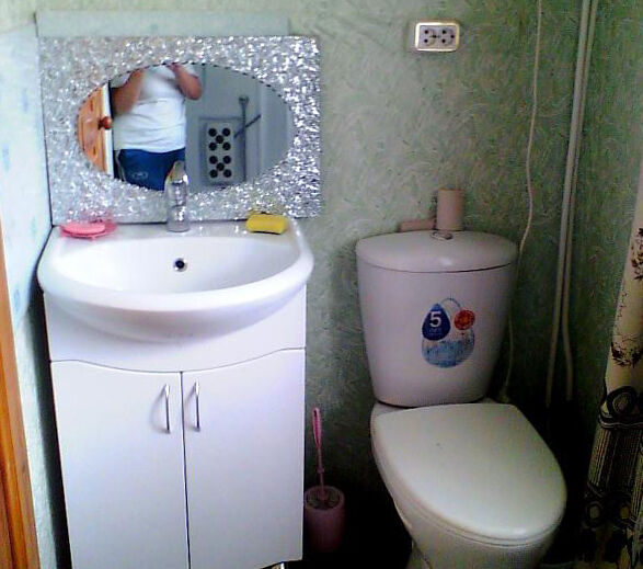 Санузел - туалет, раковина. В особняке — прихожая, из нее выходы на кухню и в гостиную с мягкой мебелью и телевизором.