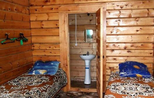 На первом этаже комната, в которой может расположиться от двух до четырех человек, на втором этаже комната с двумя односпальными кроватями.