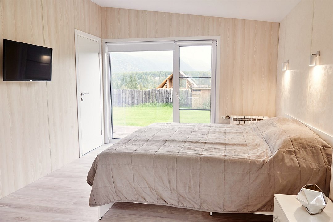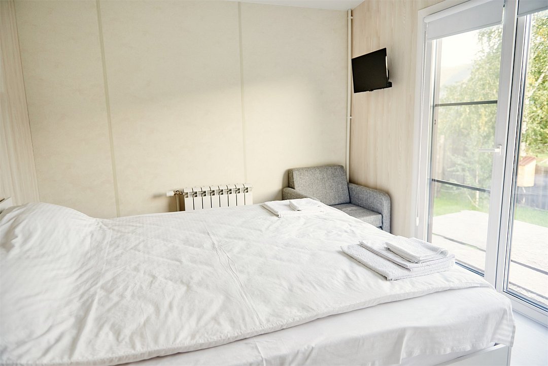 телевизор, Wi-Fi, обогреватель, душевая кабина, двуспальная кровать, шкаф для одежды, зеркало, унитаз, раковина, отопление, раскладное кресло, москитная сетка, вид на горы, номер для некурящих, вид на лес, уборка номера, можно с питомцамиВ гостиничном номере