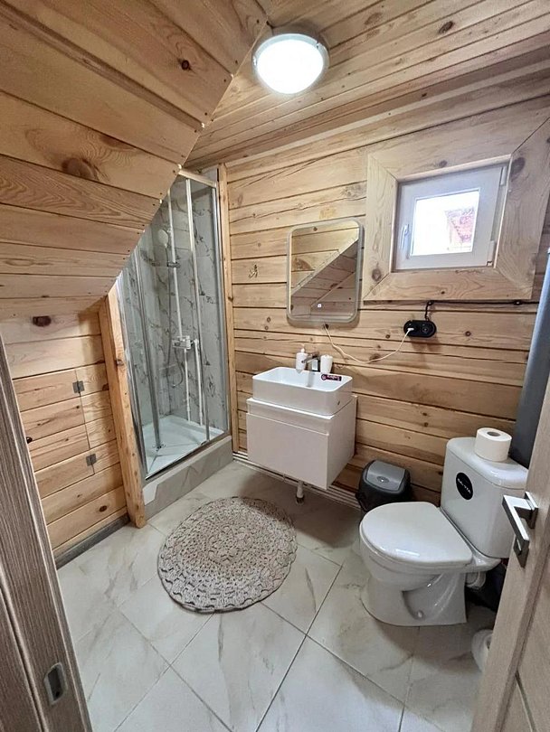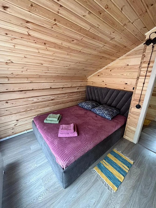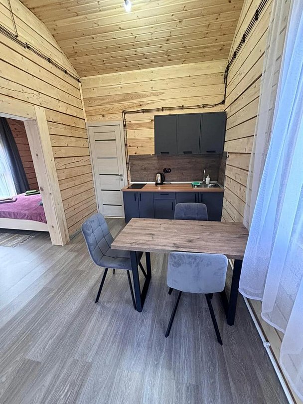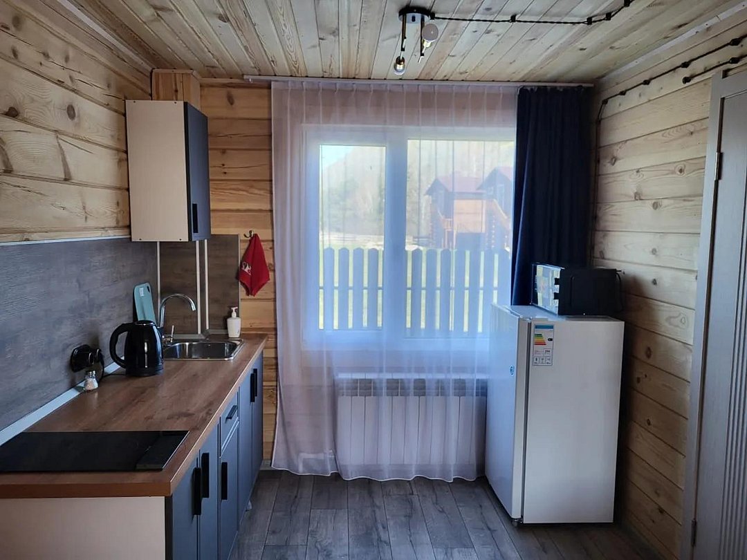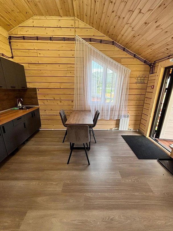 Уютные дома с видом на горы и лес полностью подготовлены для комфортного пребывания и отдыха. В каждом номере есть отопление от собственной котельной, кухня, оснащенная бытовой техникой и посудой для приготовления и приема пищи, двуспальная кровать и постельные принадлежности, SMART телевизор, Wi-Fi, санузел с душевой кабиной, полотенца по количеству гостей, гигиенические средства.