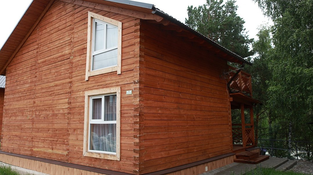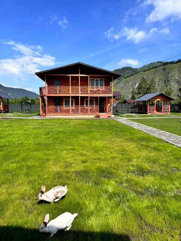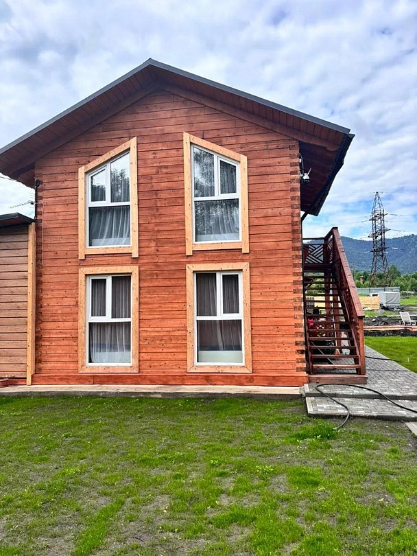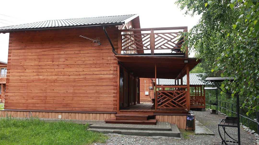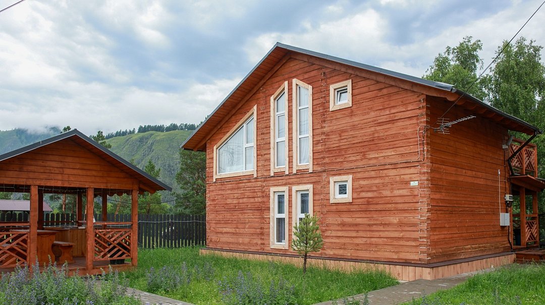 Деревянный коттедж находится на берегу Катуни и состоит из 2 номеров по 60 м².