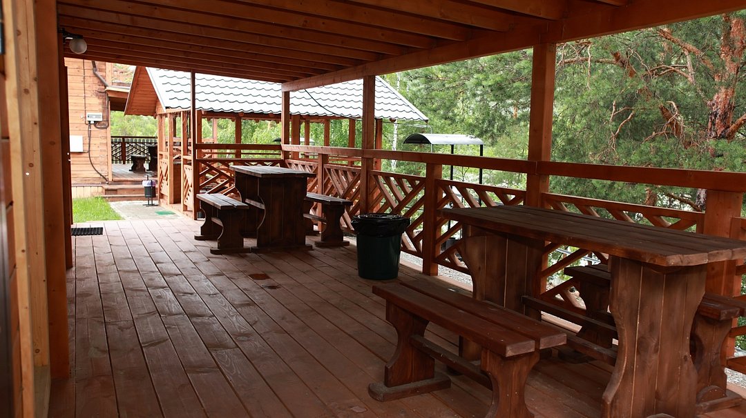 На территории базы отдыха оборудован открытый бассейн с зоной для загара и шезлонгами, установлены отдельно стоящие мангальные зоны/беседки, которыми может воспользоваться по желанию каждый гость. Рядом с домиками есть индивидуальные мангалы. За дополнительную плату доступна русская баня. На просторной веранде можно провести любое мероприятие и даже потанцевать.