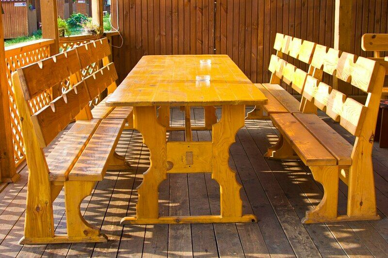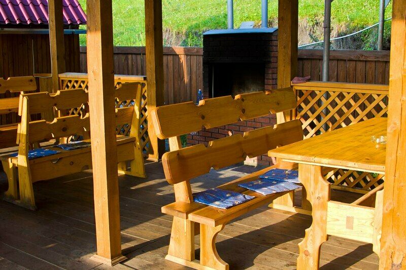 А рядом с кухней - большая беседка со столами и мангалом (решетки, дрова и шпажки – бесплатно).