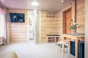 Однокомнатный дом с террасой (в единственном варианте), 28 кв м, 1 этаж. Расположен на дополнительной территории турбазы в шаговой доступности от основной. На террасе стол и стулья (гриль по запросу). Wi-fi.