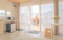 Двухкомнатный номер с террасой, 30 кв м, 1 этаж. На террасе столик, кресла, диван, Wi-fi, кондиционер, телевизор.
