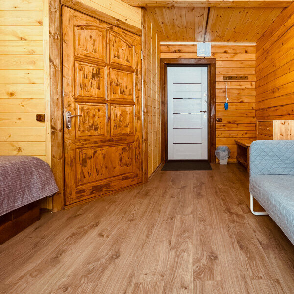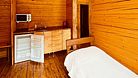 Жилые корпуса выполнены из самого экологически чистого строительного материала — дерева. В отделке и интерьере использованы натуральные материалы. В составе постельных принадлежностей только гипоаллергенные составляющие.