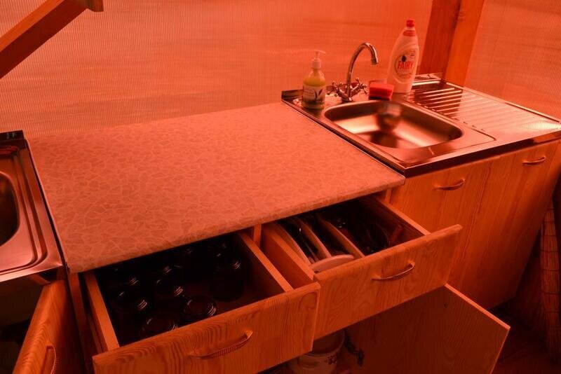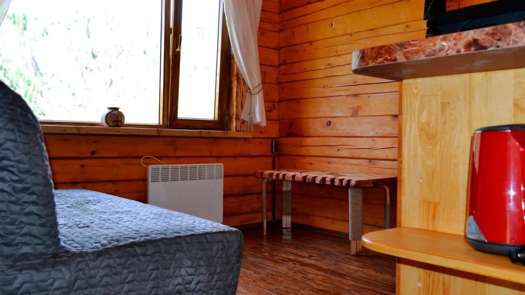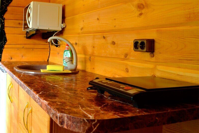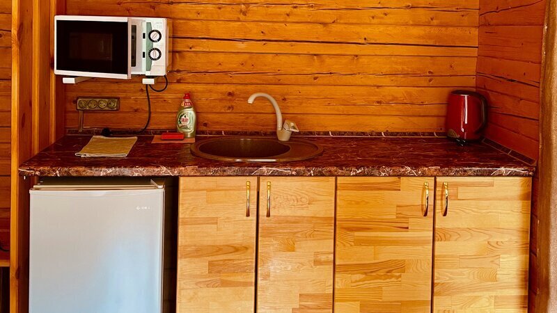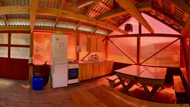 В номере тепло: работает электрокотёл. Приготовление еды возможно на общей кухне и в мангальной зоне.