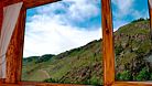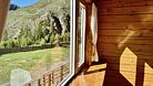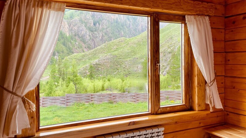 Из окна открывается вид на горы.