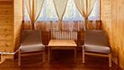 Расположение: номер с отдельным входом и смежной террасой (внутренние торцы корпусов, объединенные общей верандой). Смежная терраса с собственным столом и лавочками.