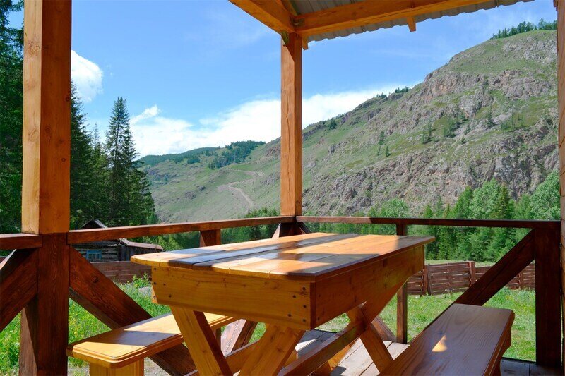 У каждого номера отдельный вход и терраса со столом и лавочками.
