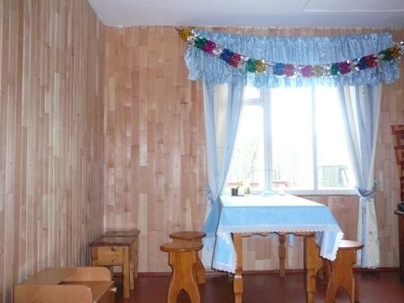1 этаж - теплый: кухня + двухместные 3 комнаты, выходящими в общий холл, 6 кроватей, тумбочки, стол, стулья, 2 русские печи, умывальник;