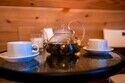 Есть кухня с бытовой техникой и вся необходимая посуда для приготовления и сервировки, постельное, полотенца и средства личной гигиены. В доме установлен камин, в холодное время года используется как источник отопления.