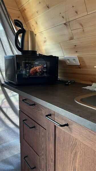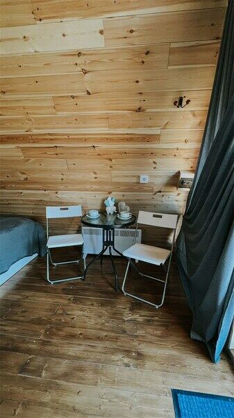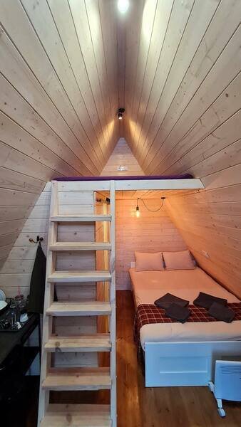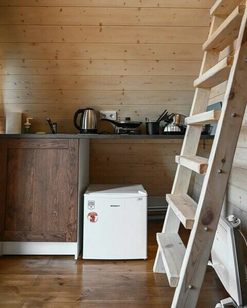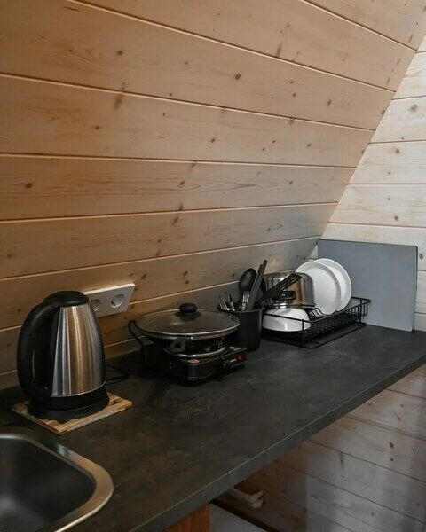 Дом рассчитан на 3х человек и имеет полную комплектацию и удобства. Есть все необходимое посуда, постельное белье, полотенца и средства гигиены. Так же есть мини-холодильник, плита, чайник.