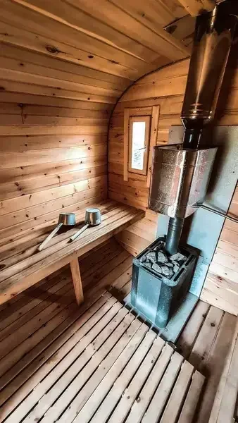 Водные процедуры (37–40 градусов) улучшают кровоснабжение легких. Парение в бочке доступно только для жильцов дома Копенгаген.