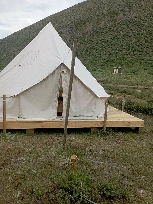 Размещение в палатках. Прекрасный вид на северо-чуйский хребет, коврики, одеяла с электроподогревом - в комплекте.
