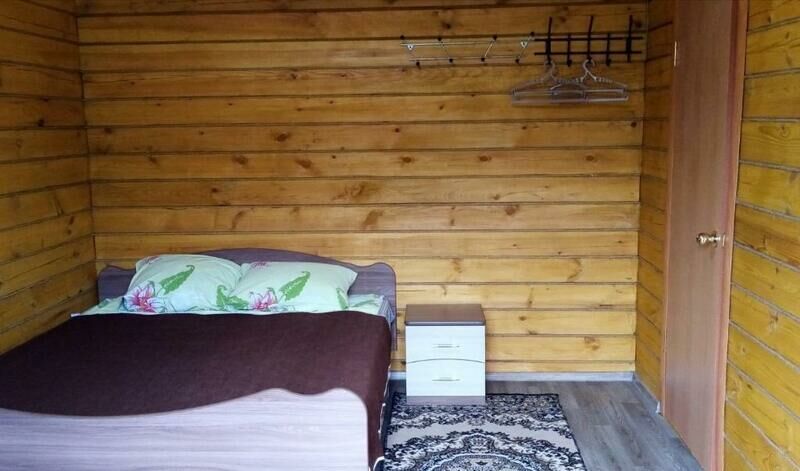 Благоустроенный домик на 4 человека. В доме имеется двухспальная кровать, раскладной диван,мини-холодильник, чайник, тумба, телевизор, душ с санузлом