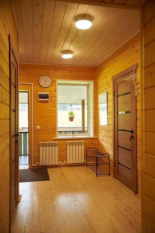 Инфраструктура: купель, полотенца, шапочки, дубовые веники, березовые веникиМинимальное время аренды: 2 часаБаня с купелью для 4–6 человек.