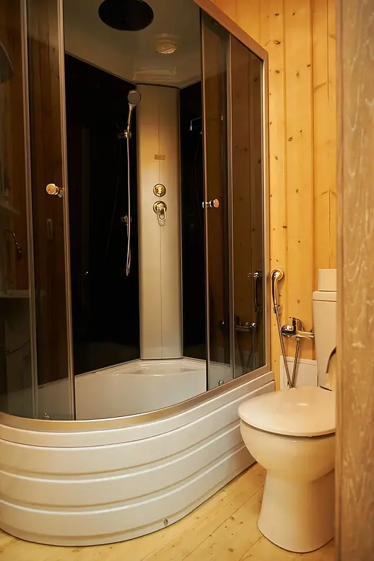 - два санузла с современным оборудованием: унитазы, раковины и душевые кабины. В каждом санузле есть необходимые туалетные принадлежности и комплекты полотенец на каждого гостя.