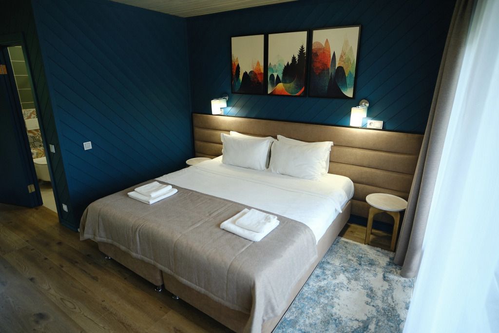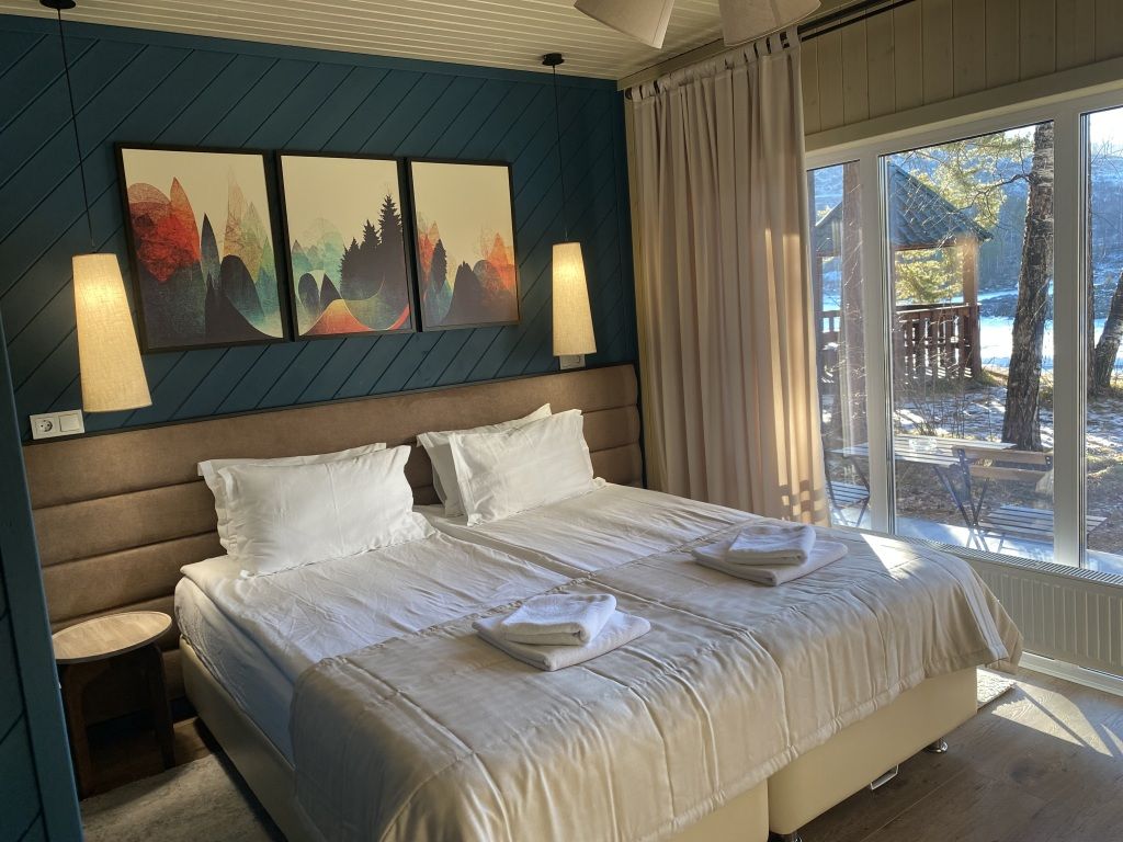 На живописной территории отеля раскинулись 16 уединенных шале, представленных категориями «Стандарт» и «Люкс», а также 9 уютных номеров категории «Стандарт» в двух элегантных коттеджах. Каждое помещение отделано с любовью к натуральным породам древесины, а из окон открывается захватывающая панорама величественных гор и сверкающей реки Катунь. Каждый коттедж расположен непосредственно на первой линии берега реки Катунь, что позволяет наслаждаться непрерывным диалогом с могучей рекой — от рассветных туманов до звёздного сияния над водой.