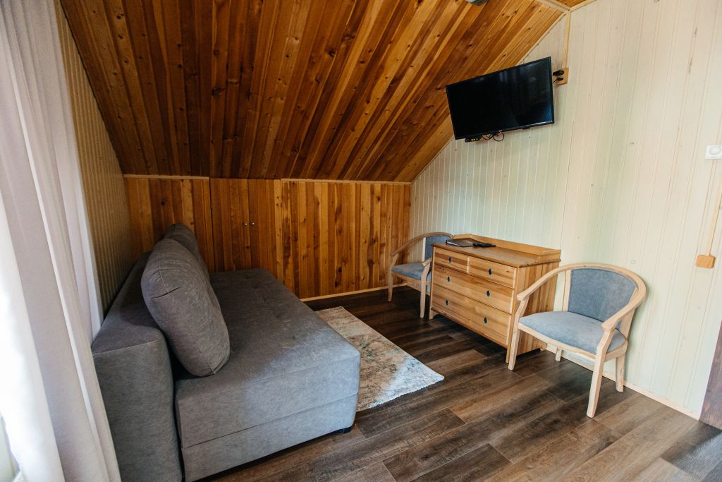 Стандартный двухкомнатный номер в коттедже с холлом. Расположен на берегу реки Катунь.