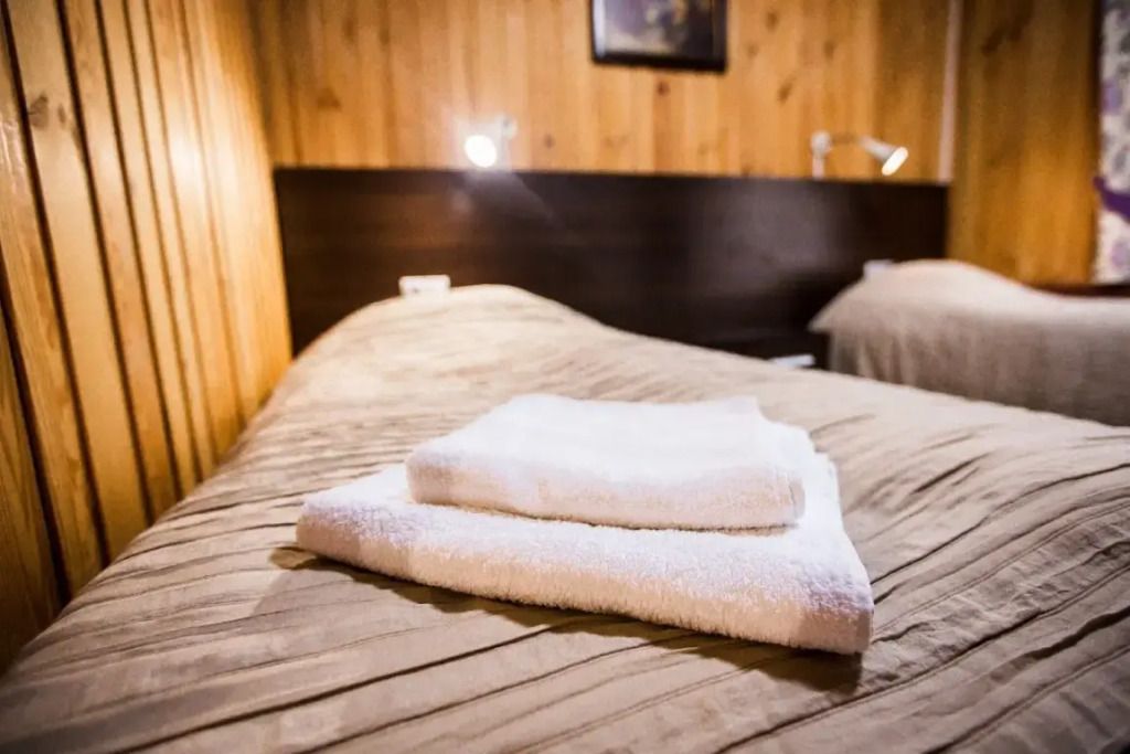 Две односпальные (либо одна разделяемая двуспальная) кровать, душевая, холодильник, телевизор, чайник, фен, сейф, полотенца — 3 на 1 персону, средства личной гигиены (шампунь, гель для душа, мыло), тапочки, швейный набор; чай и кофе в день заезда, вода питьевая из собственной скважины, Wi-Fi.