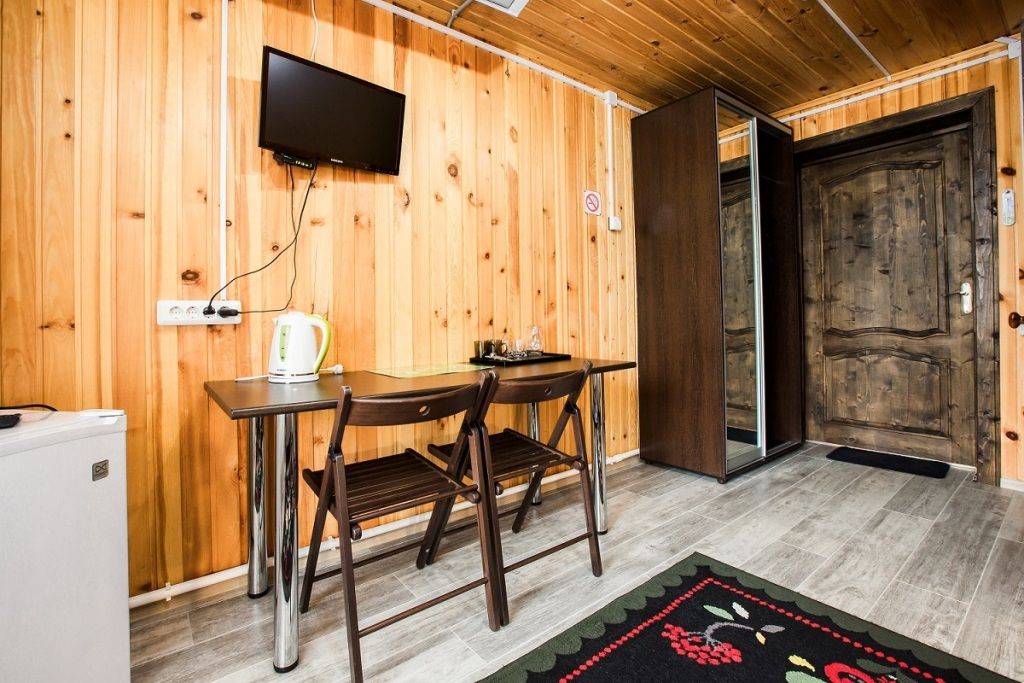 Для комфорта гостей в номерах предусмотрено всё необходимое: собственная душевая кабина и санузел, современный телевизор, холодильник для хранения продуктов и свежих напитков, электрический чайник для вечерних чаепитий, а также набор посуды.