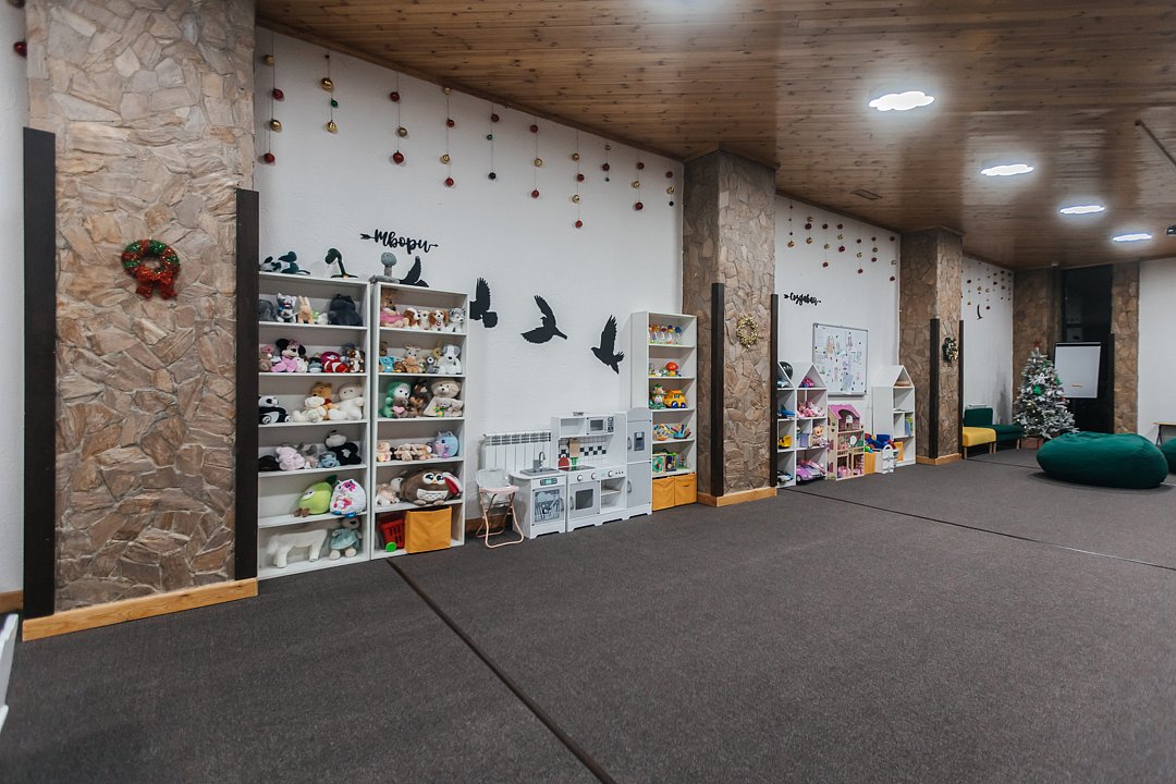 Детский клуб — это пространство для детей, где им точно не будет скучно, потому что команда профессиональных аниматоров готовы предложить ребятам увлекательные игры, развивающие мастер-классы, а маскот курорта «Снежный Барсик» всегда поднимет настроение маленьким гостям.