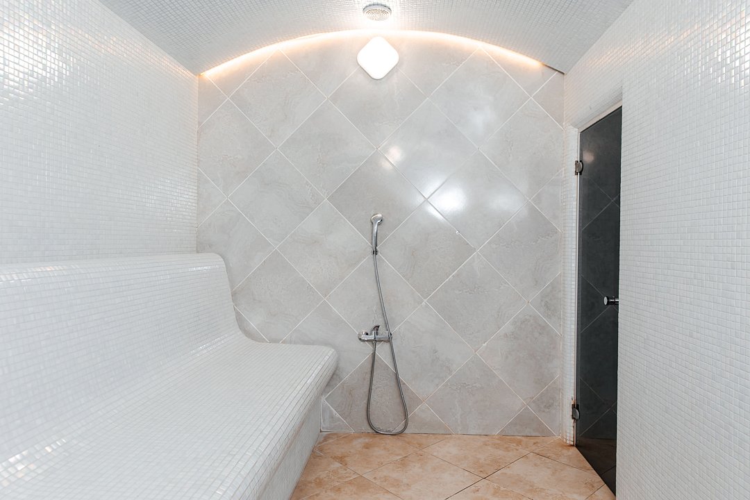Читать полностьюМикроклимат хаммама (100% влажность при температуре от 35 до 55 °C) благотворно влияет на человека и способствует расслаблению. Благодаря значительной площади испарения вентиляция легких увеличивается как минимум в 2,5 раза, а активное потоотделение способствует нормализации водно-солевого баланса.