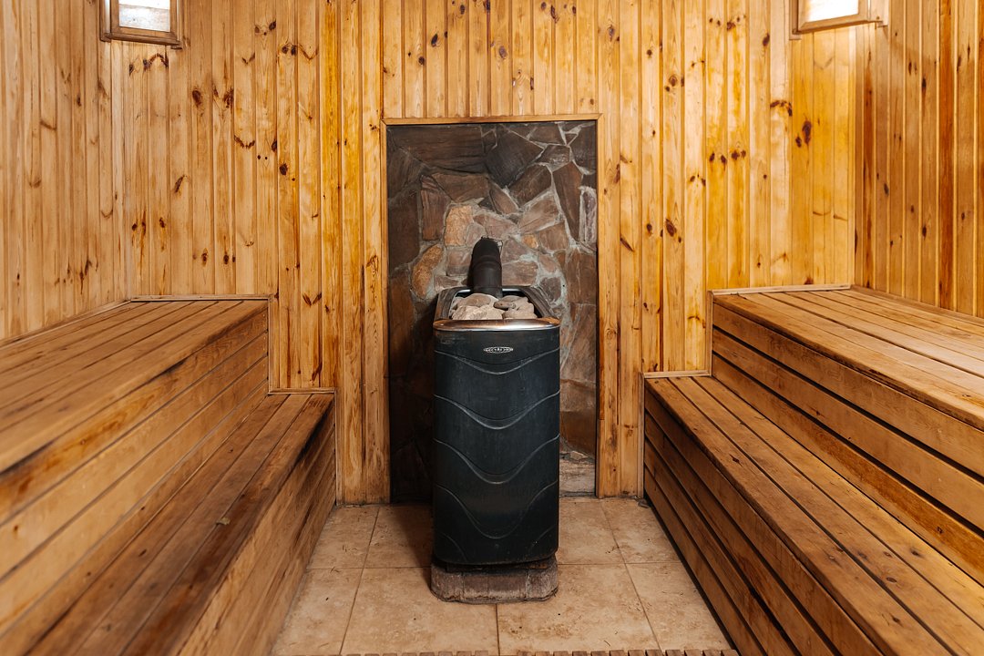 Инфраструктура: бассейн, простыниМинимальное время аренды: 2 часаВремя работы: от с 10.00 до 20.00Дровяная печь и настоящая скала в финской сауне символизируют стихии Огня и Земли. Финская сауна характеризуется низкой влажностью около 20% и горячим сухим воздухом, достигающим 100 ºС. Сухой воздух равномерно нагревает тело, а выделяющийся пот охлаждает кожу естественным путем. Соляные лампы, установленные в сауне, стимулируют иммунитет. В результате нагревания появляются пары соли, которые способствуют омоложению клеток, успокоению нервной системы, благотворно влияют на бронхо-лёгочную систему, уменьшают болевые ощущения и расслабляют.