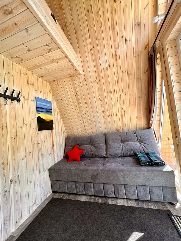 Уютный, небольшой А-фрейм 4/4 с видом на горы с максимальным комфортом площадью 16 кВ.