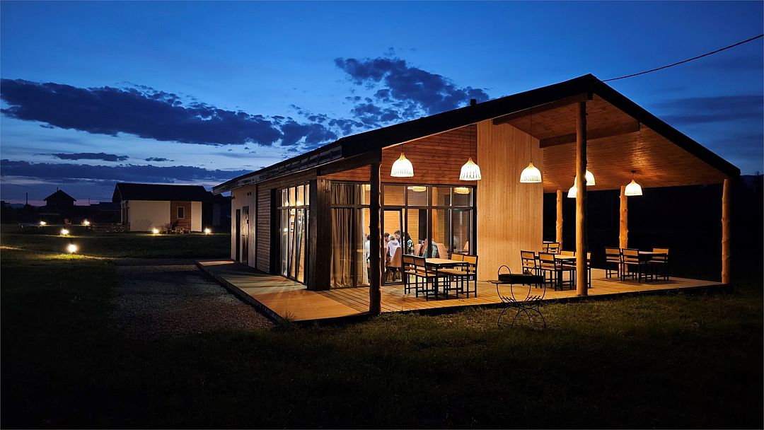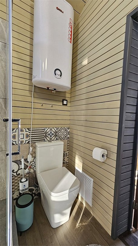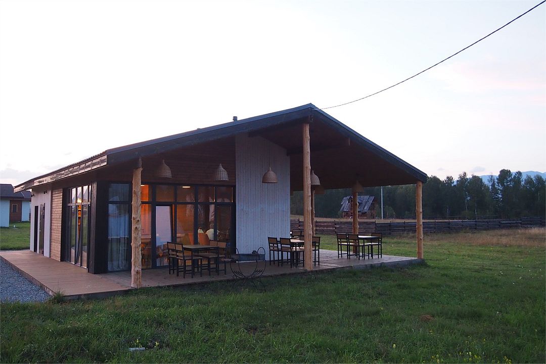 Современный комфортный дом для двух человек с комфортной кроватью Sprinbox, которую можно разделить на два спальных места или оформить в одно. Большая крытая терраса с индивидуальной мангальной зоной. Территория дома оборудована системой тёплых полов.Услуги и удобства