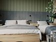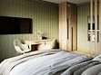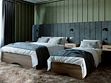 Две спальни: в одной — двуспальная кровать, прикроватная тумбочка, шкаф для одежды, бра; во второй — двуспальная кровать, прикроватные тумбочки, шкаф для одежды, зеркало, кресло, бра, балкон.