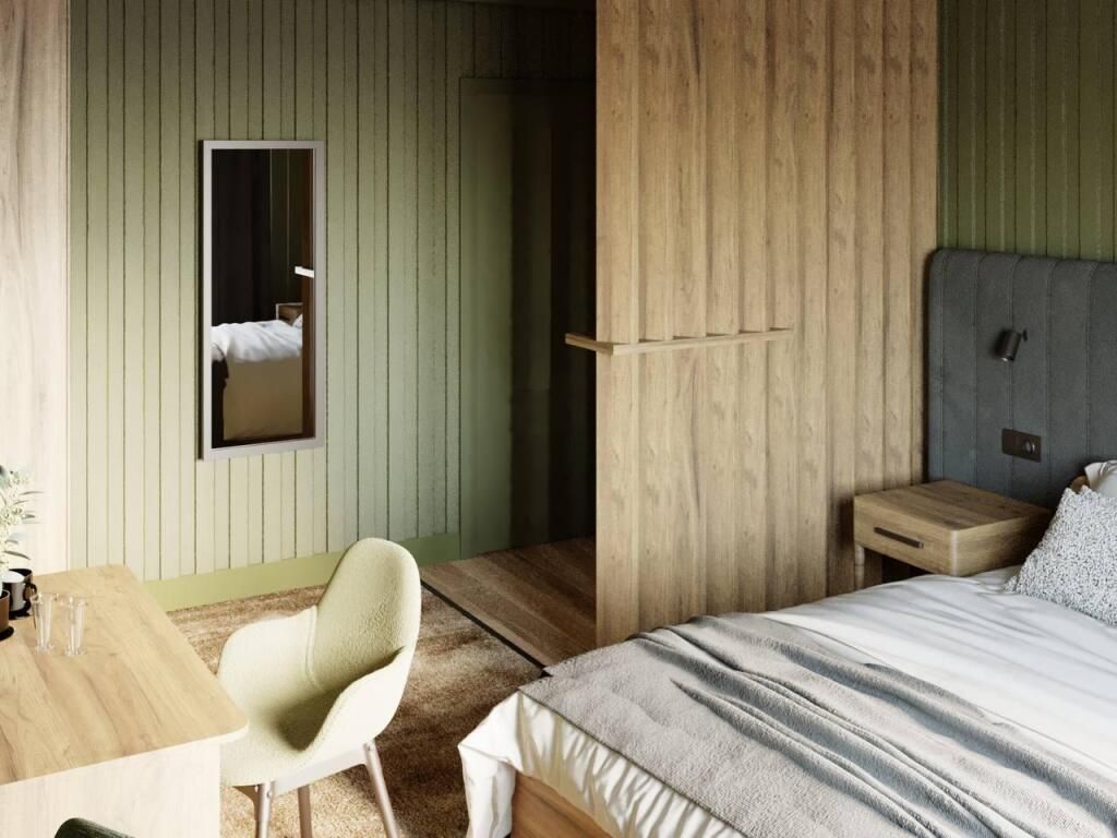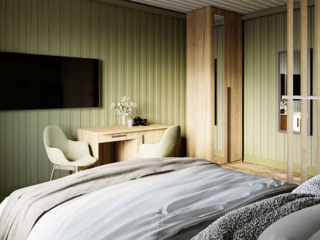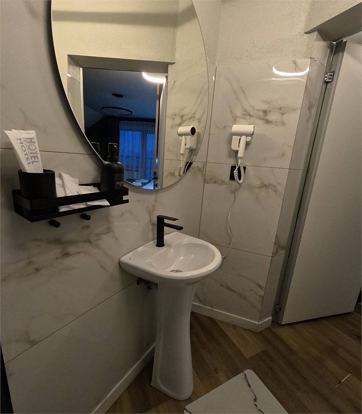 В номере: двуспальная кровать или две односпальные кровати, прикроватные тумбочки, шкаф для одежды, письменный стол, стаканы, вешалка для одежды, питьевая вода. Санузел с душевой кабиной: набор полотенец, индивидуальный гигиенический набор (мыло, шампунь, гель для душа, зубная щетка, зубная паста).