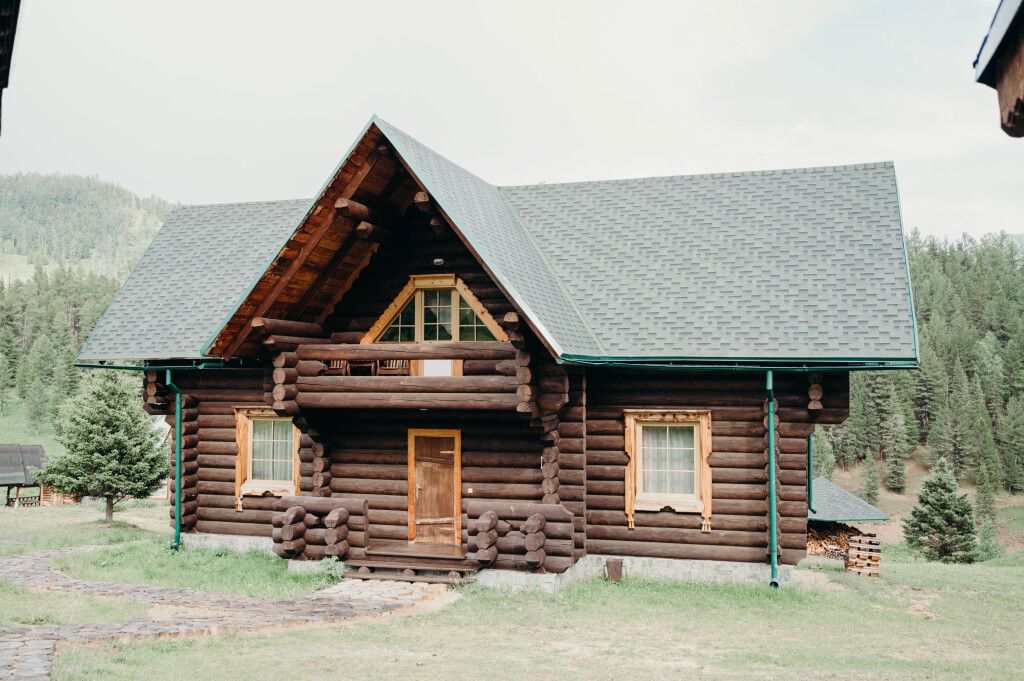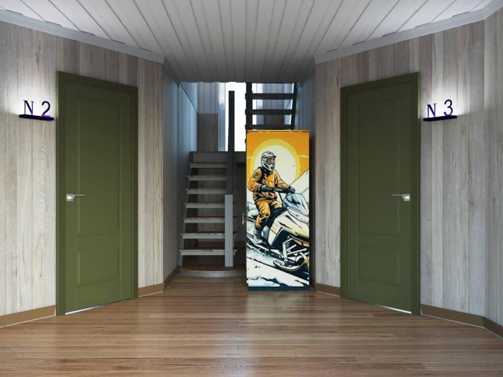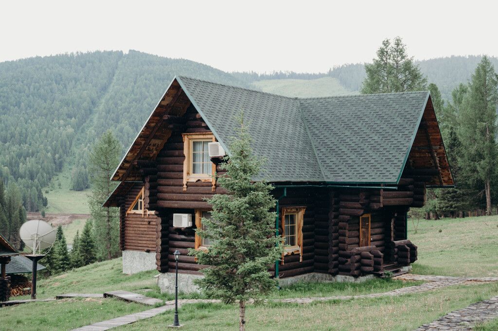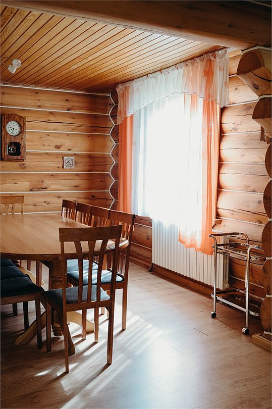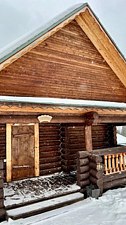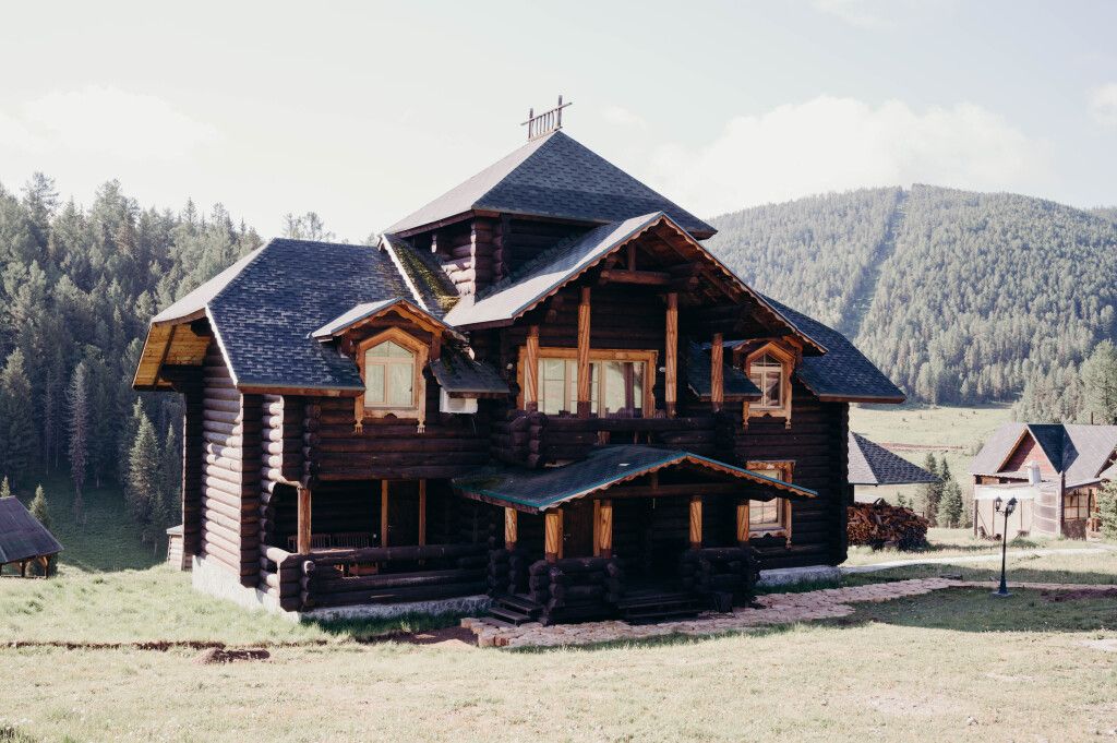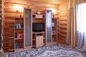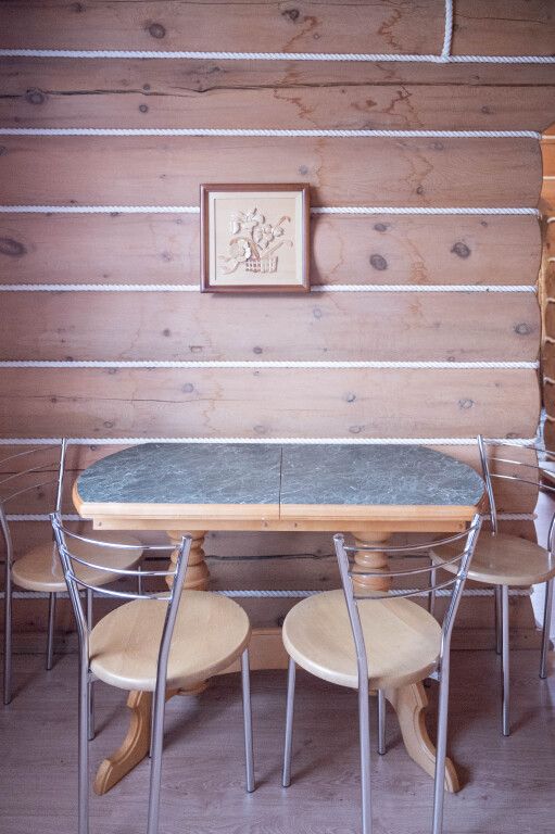 Двухэтажный коттедж «Викинг» оформлен в русском стиле, украшен шкурами диких животных, картинами, статуэтками ручной работы. Коттедж с видом на горы, лес и территорию туристического комплекса.