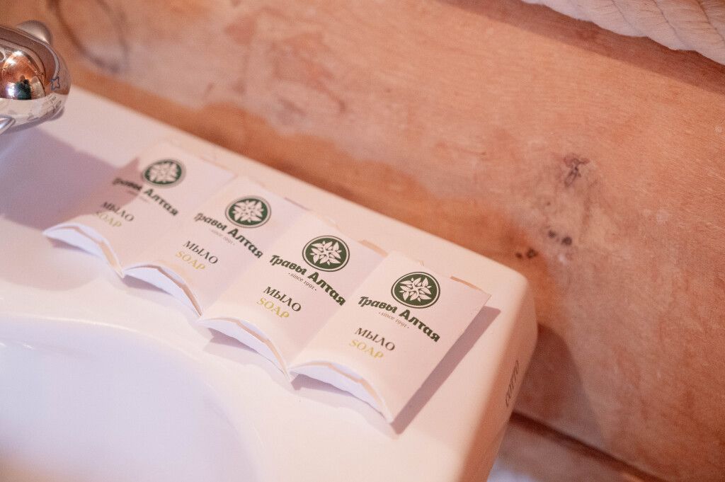 В банях есть всё: тапочки, шапочки, сидушки, полотенца, простыни и гигиенические наборы (шампунь, гель для душа, мыло). Дополнительно можно приобрести веники (берёза, дуб) и травы для запаривания.