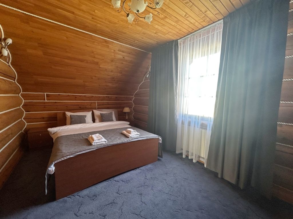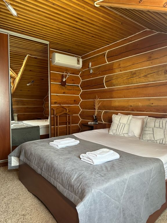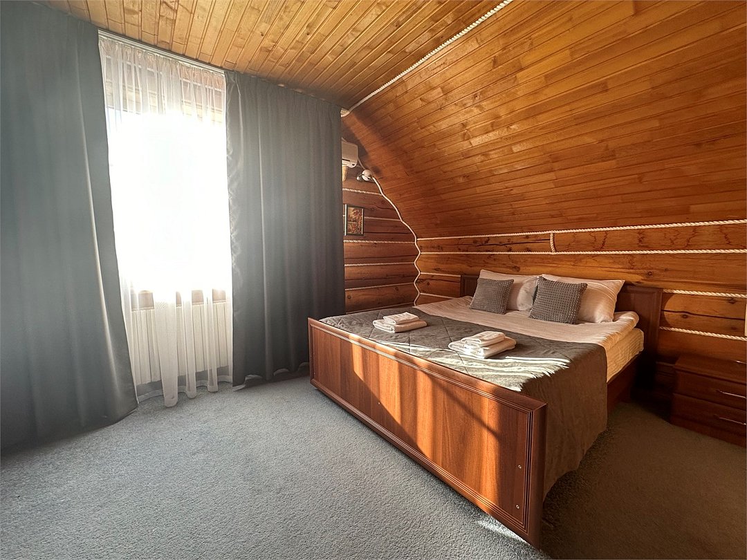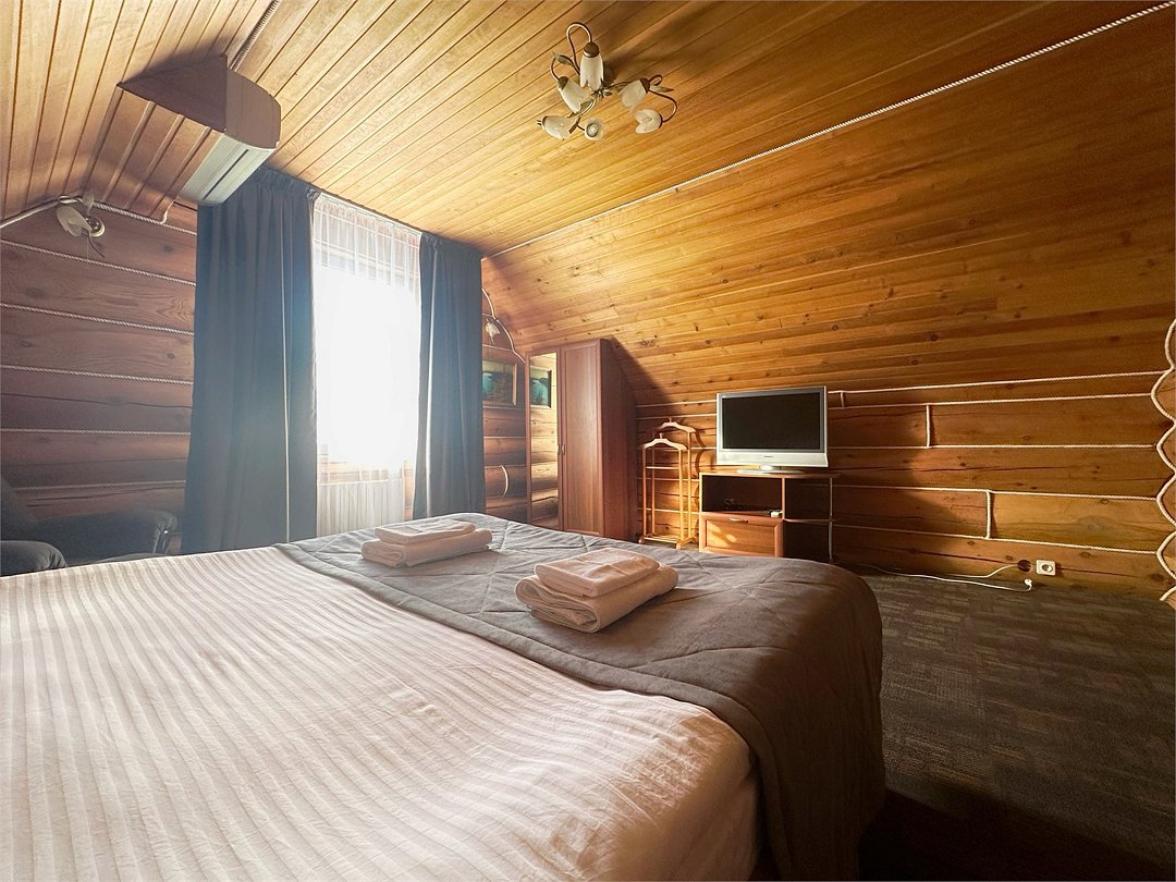 Двухэтажный коттедж с двумя двухместными номерами, один из которых с балконом. В доме все условия для комфортного проживания.