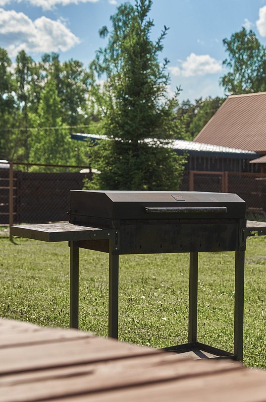 На территории рядом с домом оборудована мангальная зона для барбекю, где вы сможете приготовить любимые блюда на открытом огне. После готовки насладитесь трапезой, расслабившись в шезлонгах на уютной веранде.