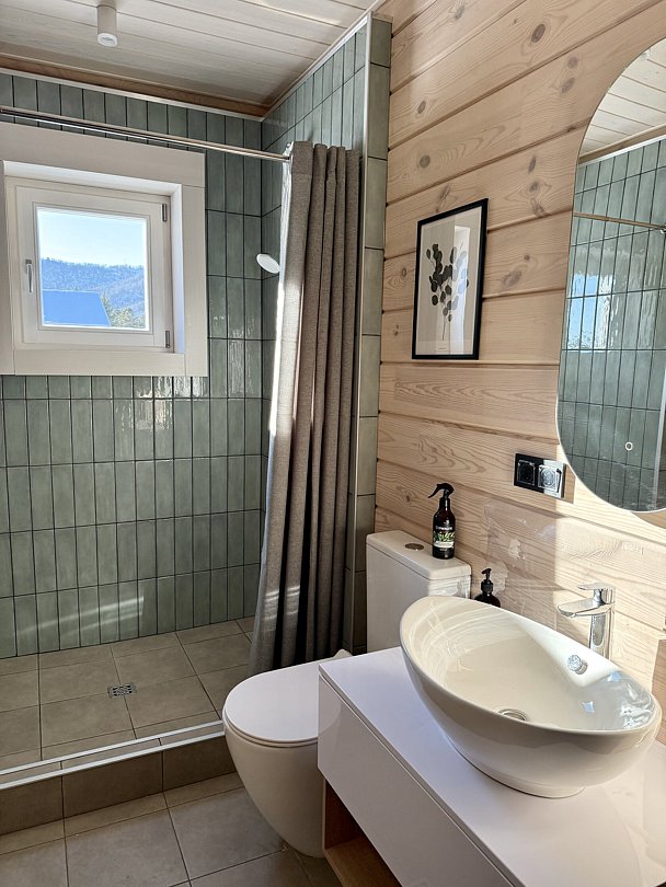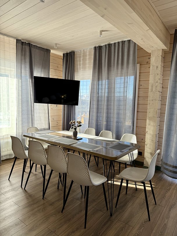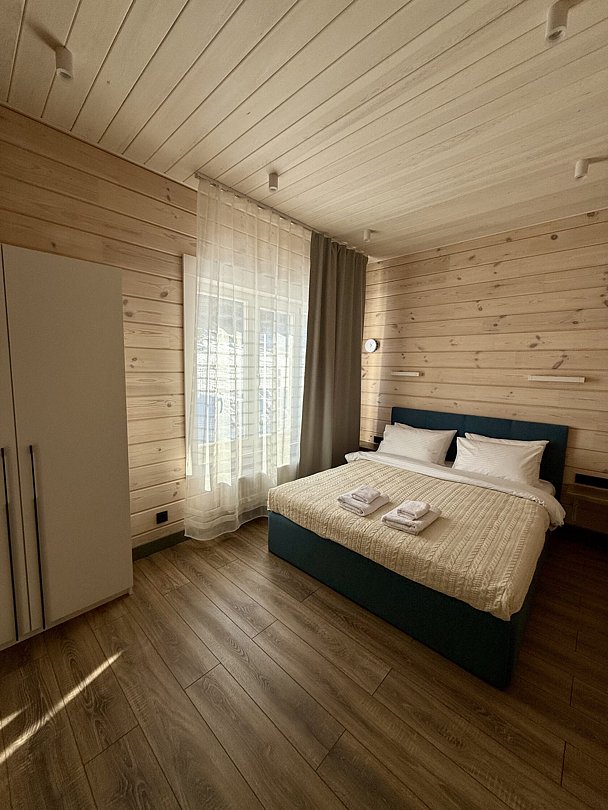 Дом вместимостью до 12 гостей находится на приватной территории и оборудован всем необходимым для вашего комфортного отдыха. Для вас 4 просторные спальни с большими окнами, кухня, полностью оснащенная современной техникой и обеденной зоной, 3 санузла с душевыми кабинами и ванной с панорамным видом, просторная терраса с видом на горы.