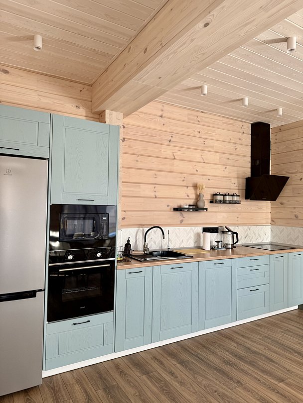 Кухонное пространство: полностью оборудованная кухня с современной техникой и обеденной зоной.
