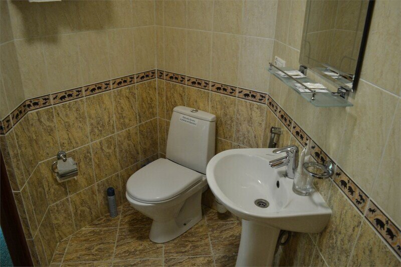 В туалетной комнате: гигиенический душ, душевая кабина, джакузи и одноразовые туалетные принадлежности.