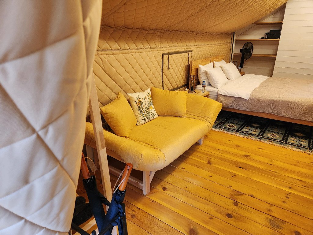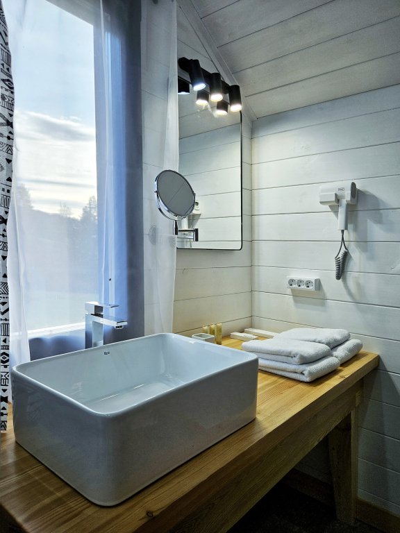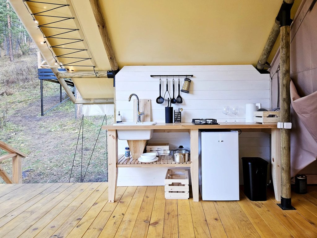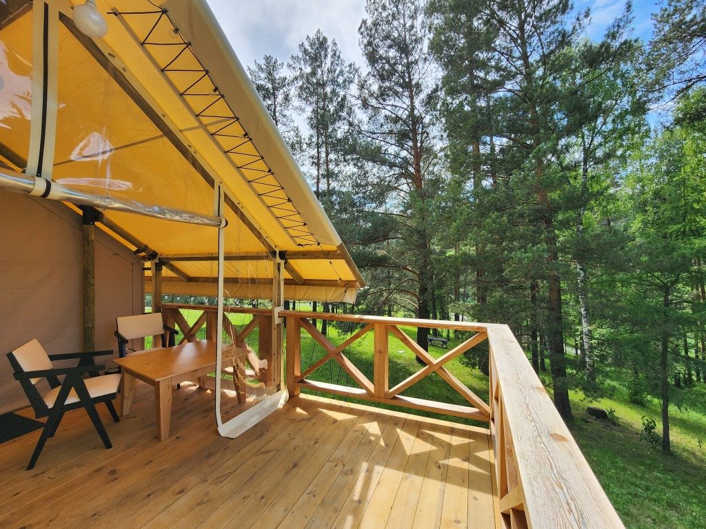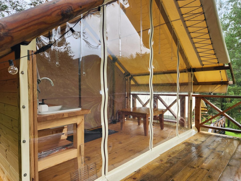 В отеле можно забронировать двухкомнатные апартаменты с панорамными окнами и сафари-тенты, предназначенные для сезонного проживания. В номерах имеется оборудованная кухня, собственный санузел с душевой кабиной и инсталляцией, тёплые полы, питьевая вода из скважины. Нет сотовой связи, но есть бесплатный Wi-Fi.