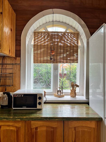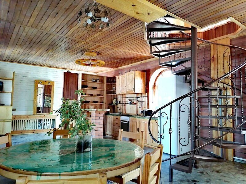 Гостевой дом в два этажа с дизайнерской отделкой и деревянной мебелью ручной работы. В доме есть интернет. Теплые полы для комфортного проживания зимой.