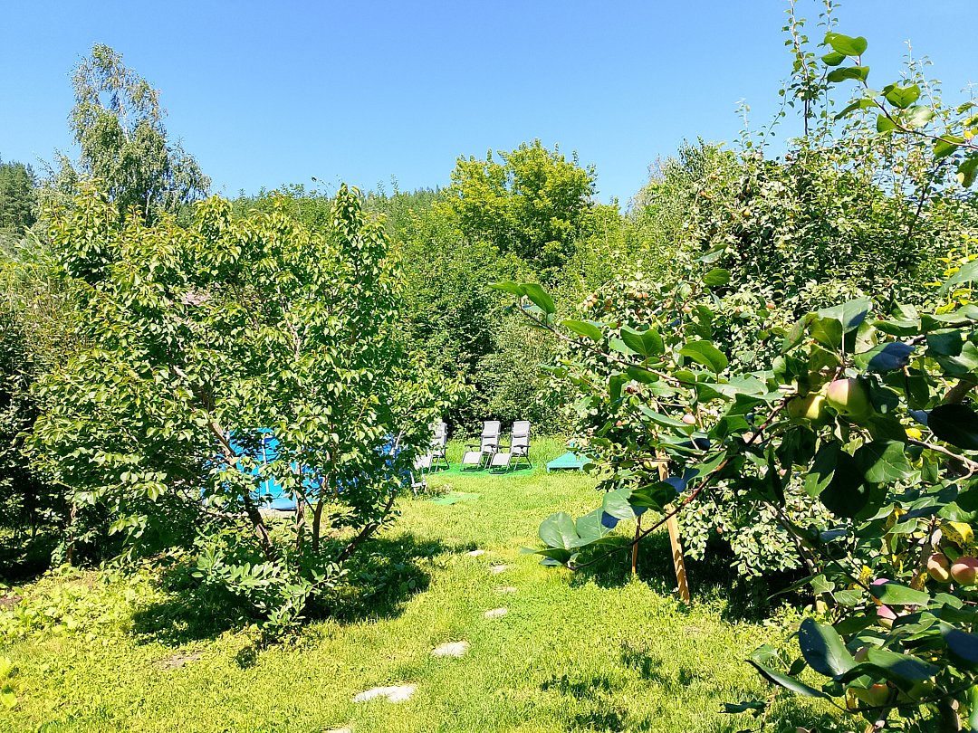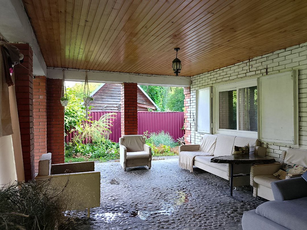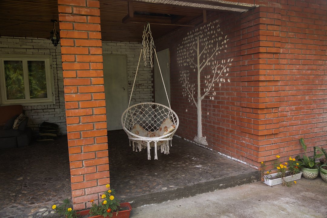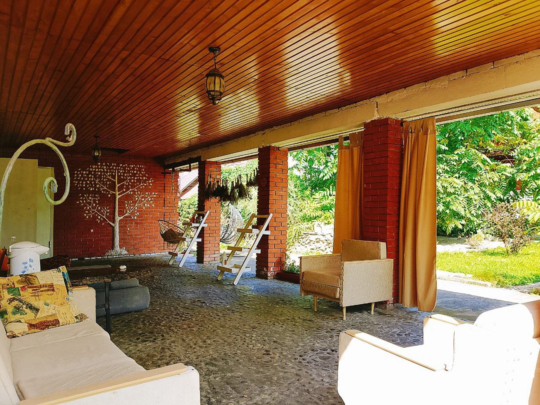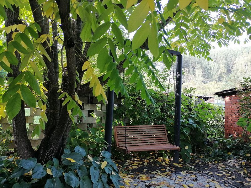- Для вашего удобства предлагаем открытую площадку под кронами крепкого маньчжурского ореха со столами и качелей ,если вас застанет дождь вы можете перейти на террасу , в которой есть большой диван с мангалом и всеми принадлежностями для барбекю.
