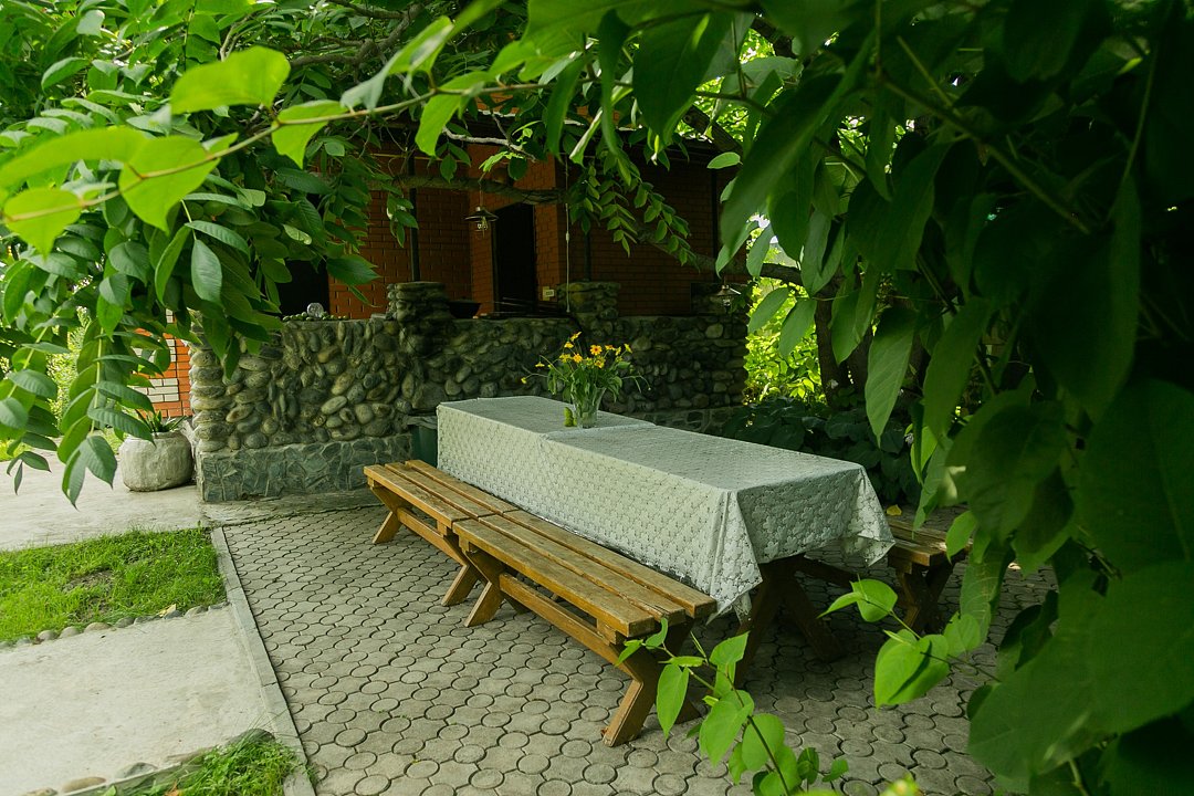 На территории Гостевого дома есть две зоны отдыха с мангалами и принадлежностями для барбекю, а также дрова; закрытый зеленый уголок для костровища и просторная терраса под навесом.