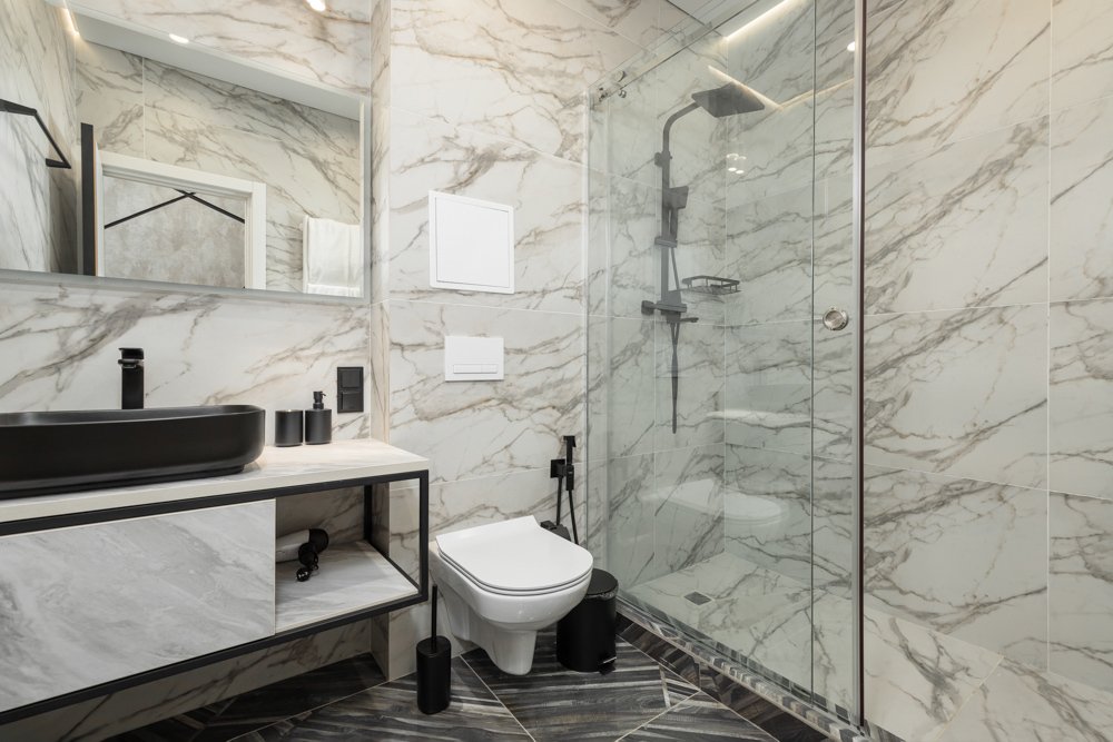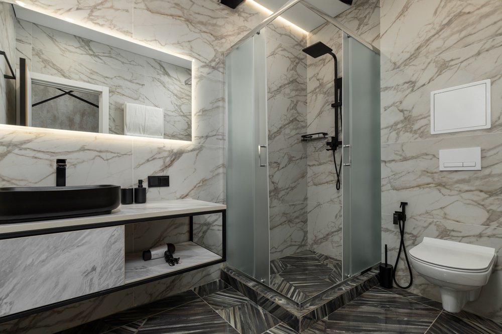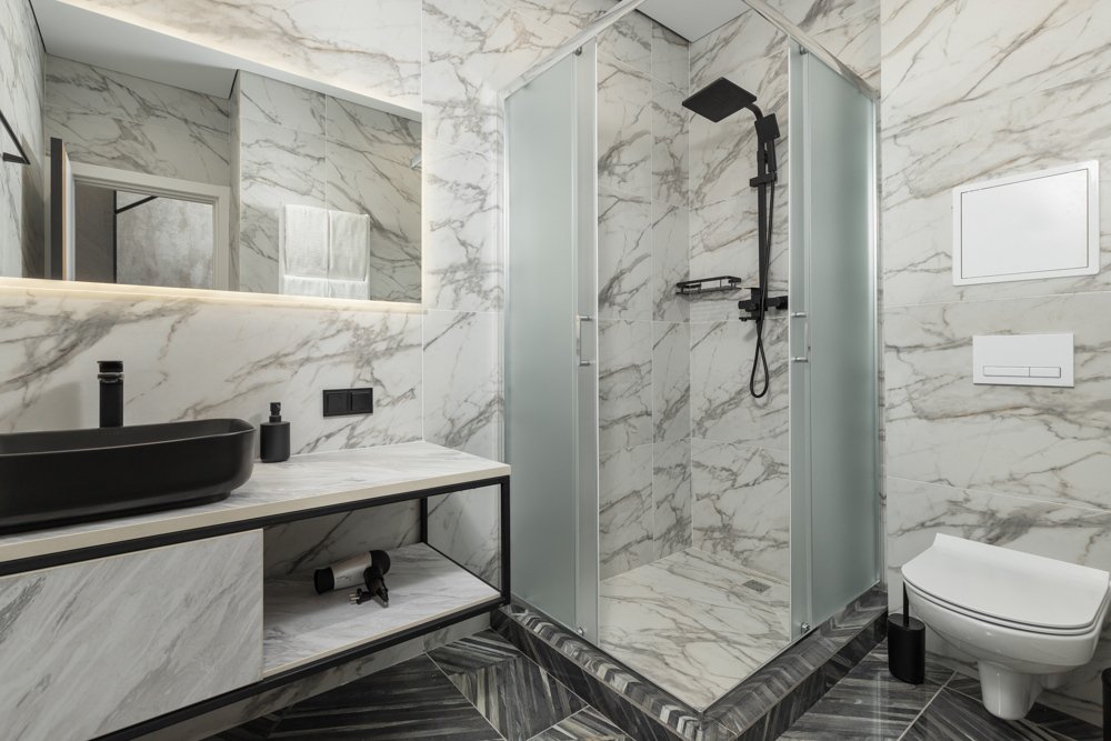 Ванная комната оборудована душевой кабиной.