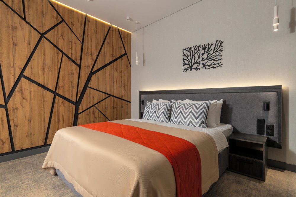 Отель состоит из двух современных корпусов — «Скала» и «Горный», предлагая разнообразие однокомнатных и двухкомнатных номеров, каждый из которых оборудован всем необходимым для комфортного проживания. В номерах предусмотрены персональные санузлы с душем, телевизоры, электрочайники и фен, а также мини-кухни в номерах повышенной комфортности.