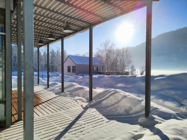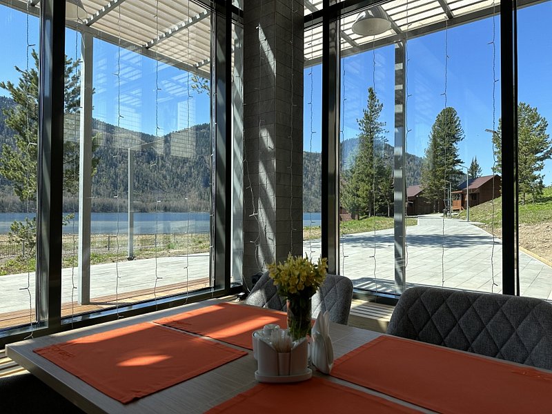 Кроме удобного лифта на верхние этажи можно подняться по лестнице. Тут вас ждут со вкусом оформленные номера с лучшими удобствами — все для приятного отпуска. На террасе с видом на озеро Телецкое, расположенной на втором этаже, над рестораном, можно выпить чашку кофе любуясь незабываемой красотой в сочетании озера и гор.