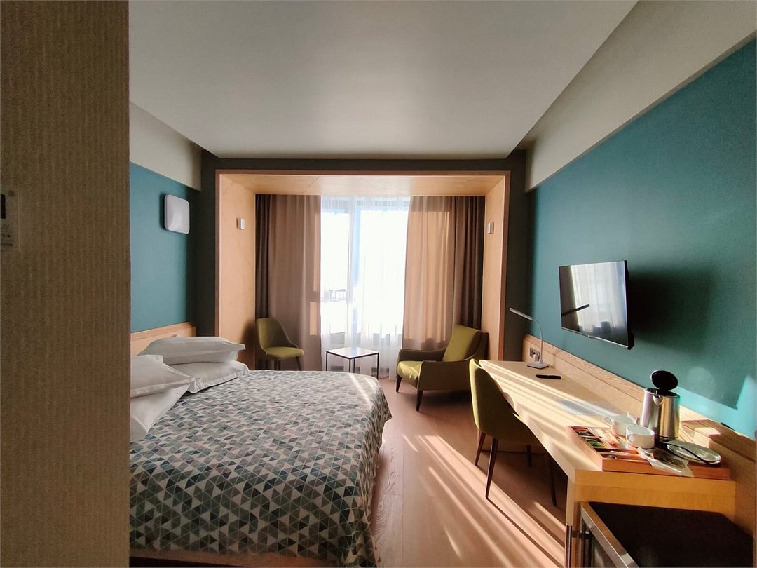 Wi-Fi, кондиционер, фен, электронные замки, утюг, душевая кабина, санузел, теплый пол, халаты, тапочки, гигиенические средства, косметические средства, кровать «Queen size», кресла, стулья, шкаф для одежды, вешалки, чайный набор, сейф, чайник, унитаз, раковина, питьевая вода, отопление, душ, стаканы, стол, внутренний телефон, мини-холодильник, вид на озеро, вид на горы, телевизор со Smart TV, теплые полы, номер для некурящих, уборка номера, набор для приготовления чая и кофе, бутилированная вода, мыло, можно с питомцамиВ гостиничном номере